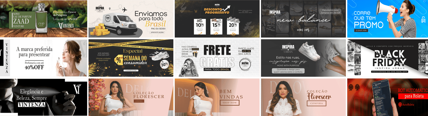 Dê um toque de personalidade e profissionalismo com um banner feito do seu jeito, Aqui você encontra uma seleção de banners criados para sites, combinando design estratégico e visual atraente. Cada peça foi desenvolvida para comunicar mensagens com clareza, destacando marcas, produtos e serviços de forma impactante.